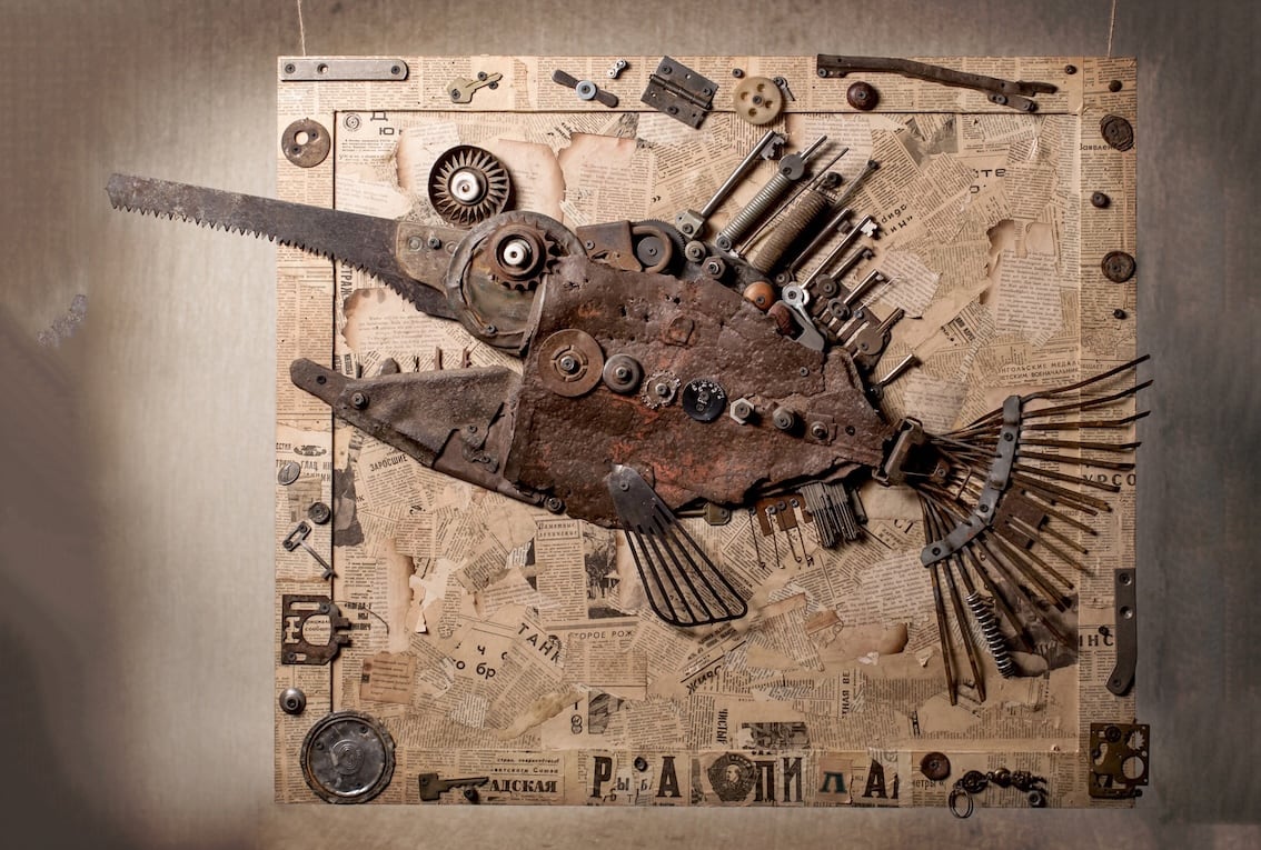 “Guardas algunas cosas viejas en el taller, y luego pones una cosa junto a otra y te das cuenta: oh, y esto es un pez, y esto es un ser humano. Pones en marcha tu imaginación, tienes una idea, y cada idea tiene una energía que te hace completarla”, asegura Andrei Sikorsky.