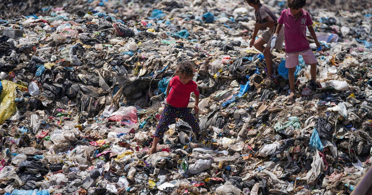 Imágenes satelitales de Planet Labs —una empresa privada de satélites de observación de la Tierra— analizadas por The Associated Press muestran que un vertedero informal en Khan Younis que surgió después del 7 de octubre parece haberse duplicado en longitud desde enero. Desde la evacuación de Rafah, ha surgido una ciudad de tiendas de campaña alrededor de ese vertedero, y los palestinos viven entre montones de basura.