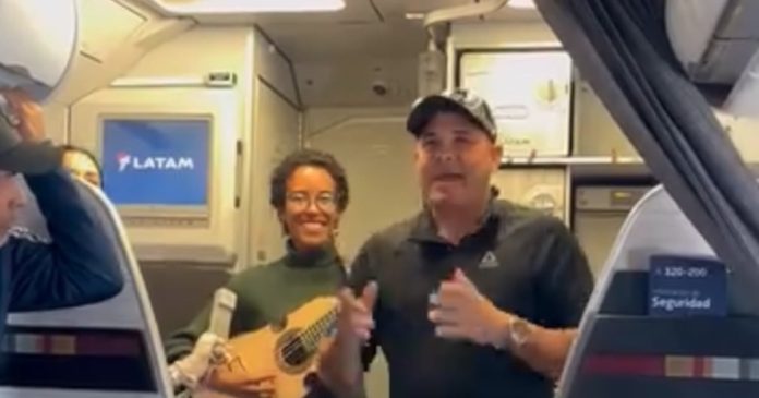 Al finalizar la canción los que abordaban el avión aplaudieron con regocijo.