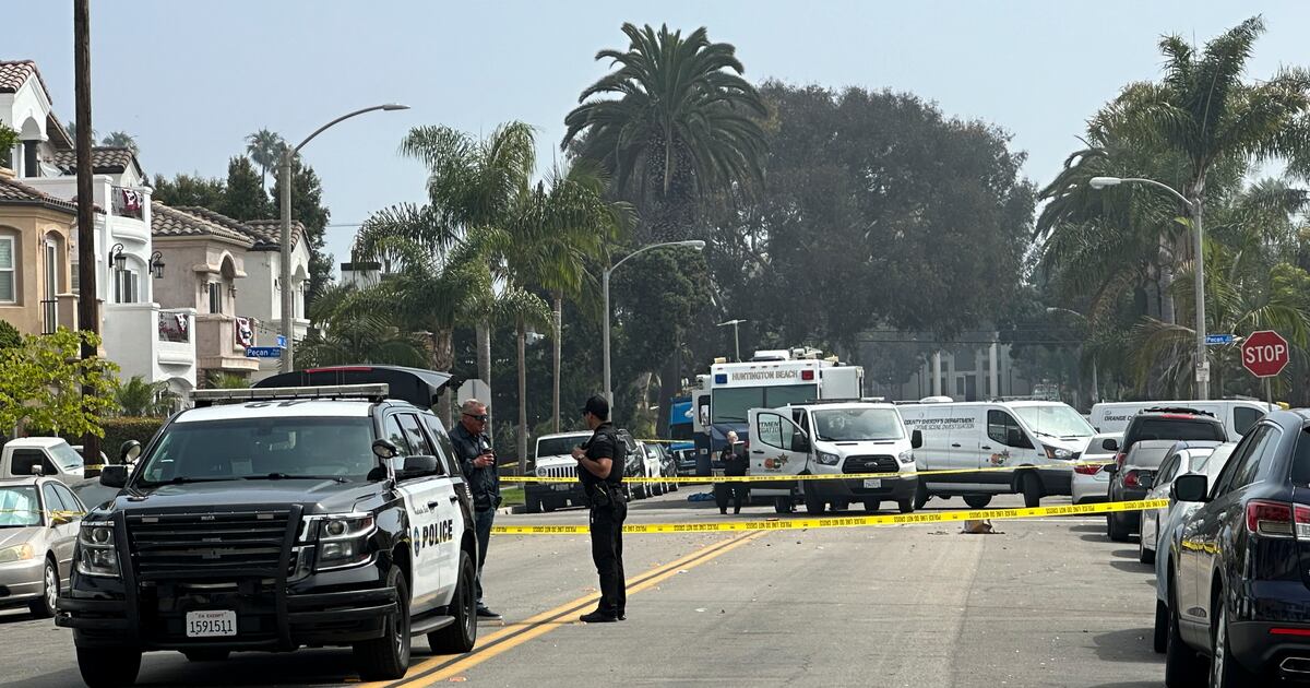 El viernes por la mañana, el forense del condado retiró dos cadáveres de la escena del crimen, que abarcaba una mediana con palmeras y césped en un vecindario residencial. La violencia ocurrió a pocas manzanas de la playa en una comunidad conocida como “Surf City USA”.