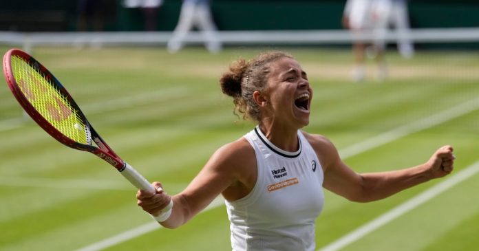 Pero la séptima sembrada italiana nunca se dejó vencer y eventualmente convirtió su tercer punto de match. Esta demostración en el césped del All England Club sucede después de que llegó a la final en arcilla el mes pasado en Roland Garros y que perdió ante Iga Swiatek.