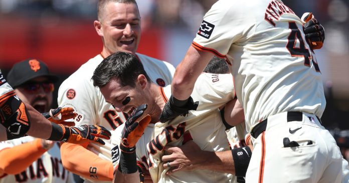 SAN FRANCISCO (AP) — Mike Yastrzemski conectó un triple y anotó en la baja del noveno capítulo cuando el tiro de recorte pasó por encima del tercera base venezolano de Minnesota, Diego Castillo, dándole el triunfo a los Gigantes de San Francisco, 3-2 sobre los Mellizos el domingo.