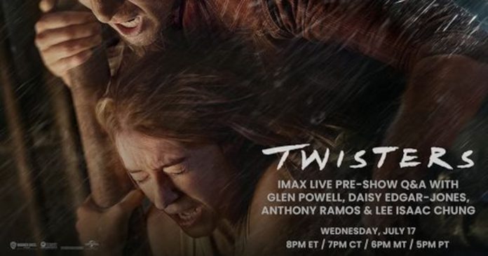 El evento se podrá disfrutar en las salas IMAX de Montehiedra y Plaza Carolina comenzando a las 7:30 de la noche con un IMAX pre-show, seguido por el Q&A a las 8:00 de la noche desde New York y culminando a con el pre-estreno de Twisters a las 8:30 de la noche.