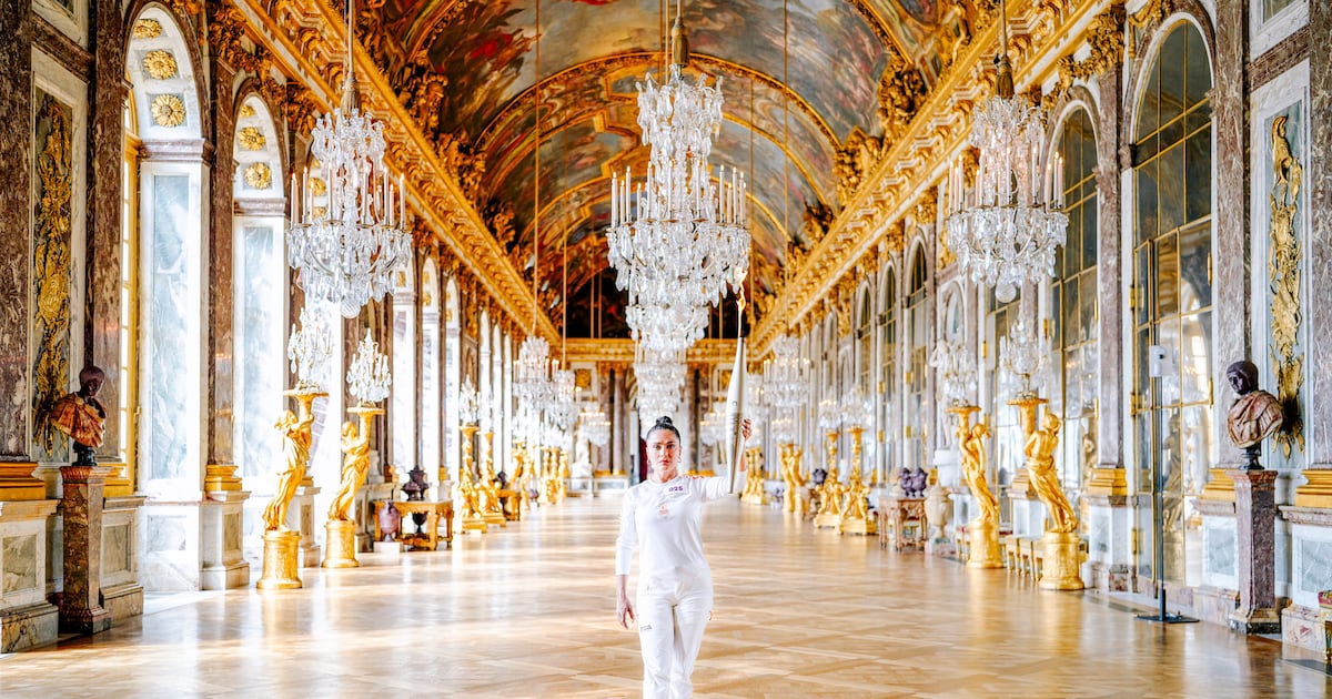 La originaria de Coatzacoalcos, Veracruz, recibió la llama olímpica de parte de Presnel Kimpembe, futbolista del PSG, mientras se encontraba en la llamada Galeris des Glaces en el Palacio de Versalles.