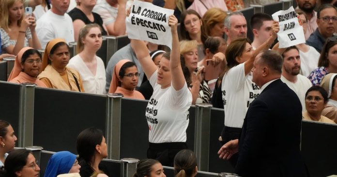 HomeMundoManifestantes de PETA interrumpen una audiencia del papa: “Las corridas son pecado”