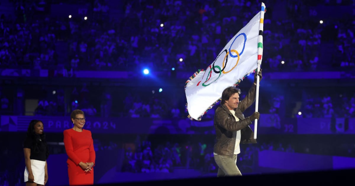 LOS ÁNGELES (AP) — Es el turno de Los Ángeles para la antorcha. La alcaldesa Karen Bass aceptó la bandera olímpica en la ceremonia de clausura de París el domingo, antes de entregársela a un representante clave de los negocios locales de Los Ángeles, Tom Cruise, quien en un viaje pregrabado en motocicleta, avión y paracaídas inició la cuenta regresiva para 2028.