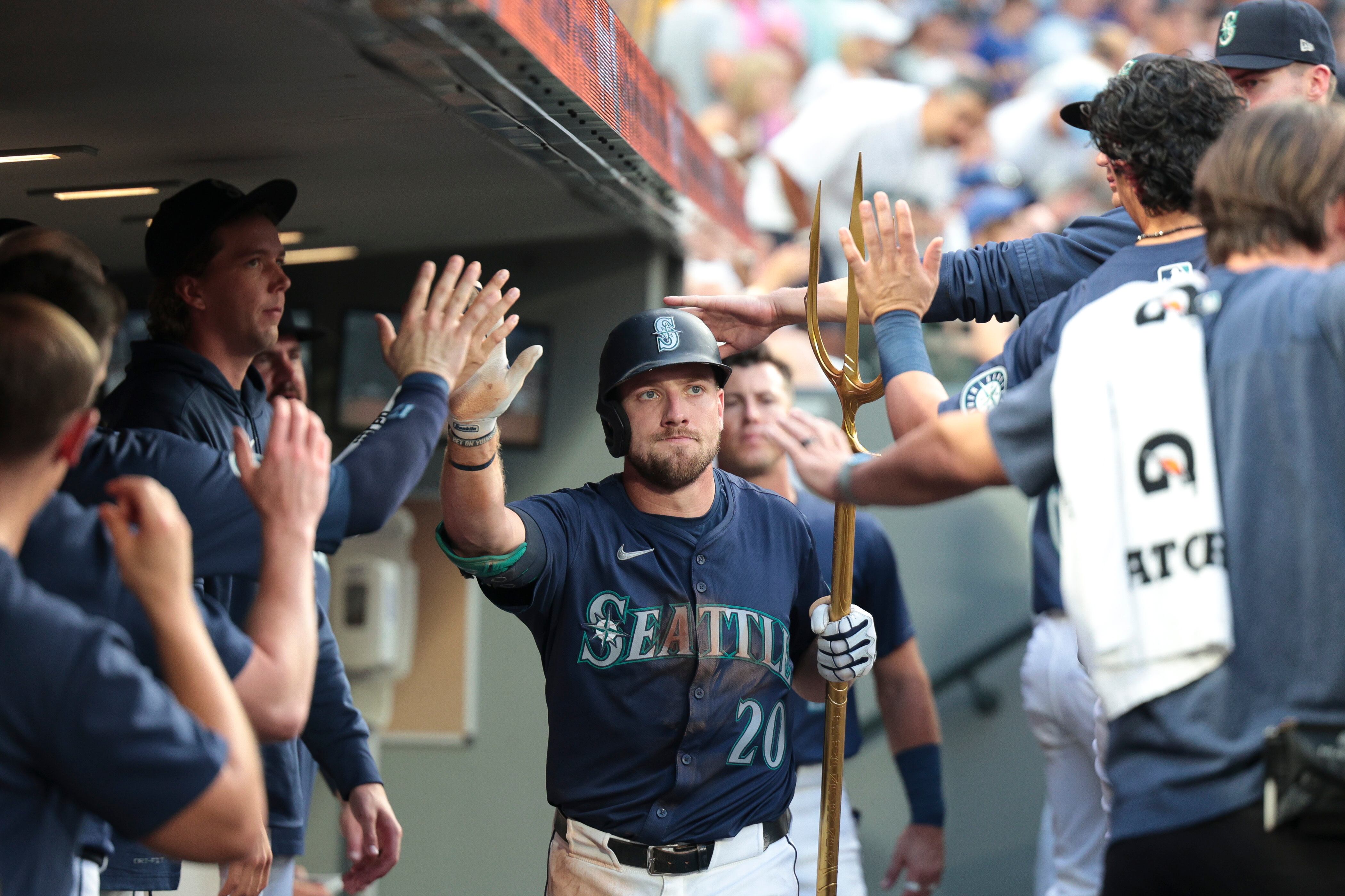 Cal Raleigh adelantó a Seattle con un jonrón de dos carreras por el jardín opuesto en la primera entrada y llegó 27 cuadrangulares en la temporada con su batazo de 367 pies ante Jake Woodford (0-5).