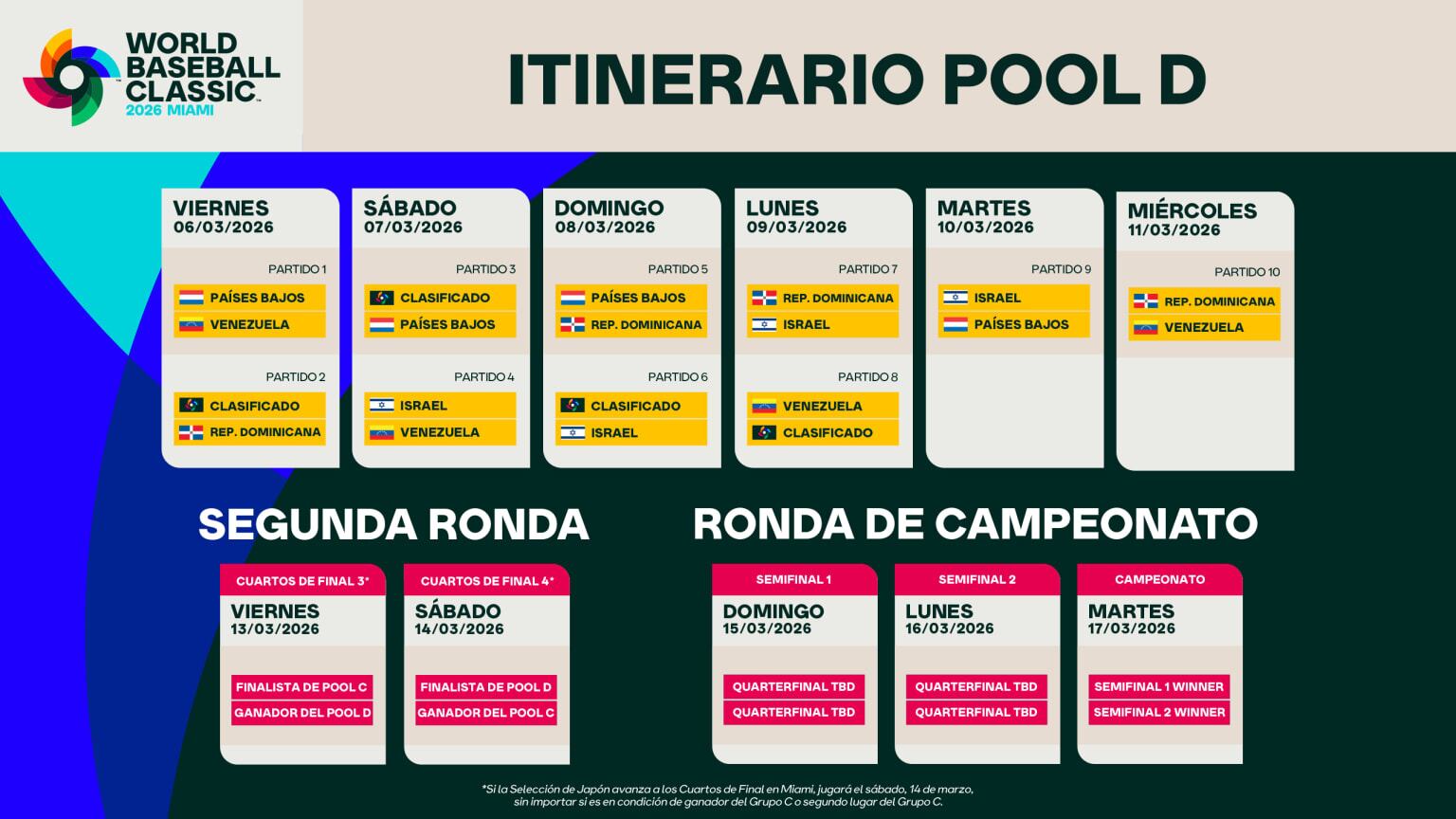 El Grupo D estará compuesto por República Dominicana, Venezuela, Países Bajos e Israel en el loan Depot park en Miami