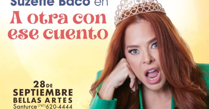 Luego de varios años sin presentarse en un espectáculo en solitario, la actriz y comediante Suzette Bacó regresa al teatro con su unipersonal “A otra con ese cuento”, donde, con su estilo único de hacer comedia, le contará a todos que el tan esperado príncipe azul no existe.