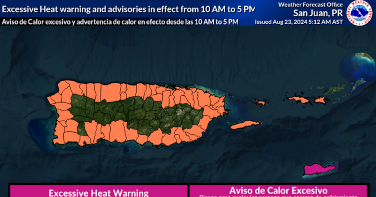 Advertencia de calor en efecto desde las 10 de la mañana hasta las 5 de la tarde.