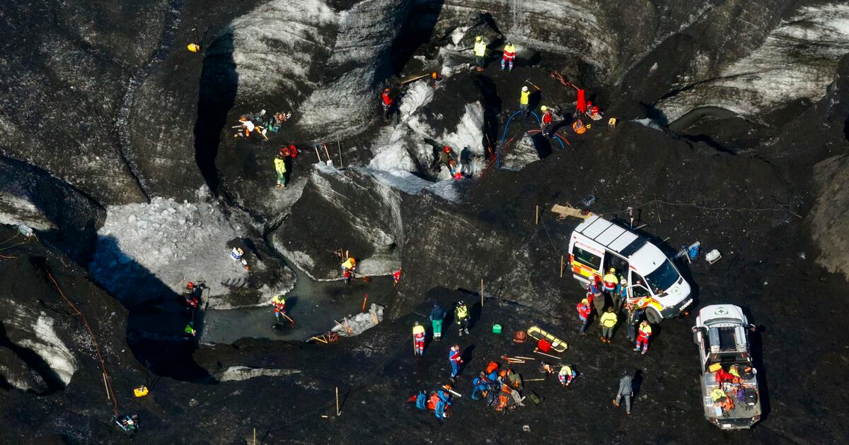 La búsqueda, que fue suspendida en la noche debido a las condiciones peligrosas, se reanudó a eso de las 7 de la mañana, reportó la emisora RUV. Videos muestran a los rescatistas trabajando en dos enormes cráteres rodeados por el hielo ennegrecido del glaciar.