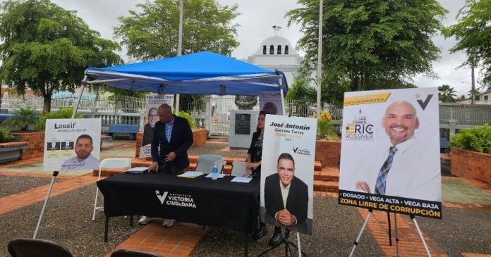 El candidato a la alcaldía de Vega Alta bajo el Movimiento Victoria Ciudadana (MVC), José Antonio González Torres, ofreció este lunes una conferencia de prensa en la plaza pública Gilberto Concepción de Gracia para presentar sus propuestas para dicho municipio y a su equipo de legisladores municipales.
