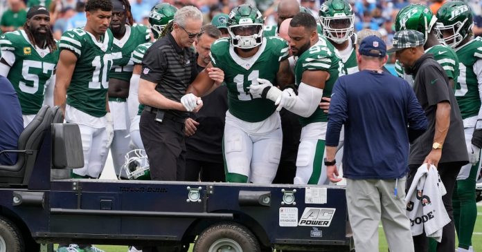 FLORHAM PARK, Nueva Jersey, EE.UU. (AP) — El linebacker de los Jets de Nueva York Jermaine Johnson confirmó el lunes que sufrió una desgarro del tendón de Aquiles derecho.