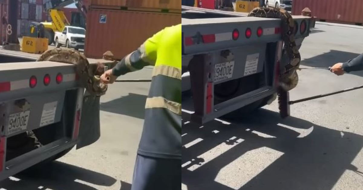 Según compartió en redes sociales la meteoróloga Deborah Martorell, el réptil se encontraba entre el contenedor y el chasis del camión, y fue capturado en el muelle de San Juan.