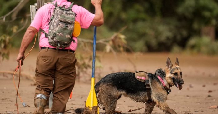 SWANNANOA, Carolina del Norte, EE.UU. (AP) — Perros entrenados para localizar cuerpos y equipos de búsqueda de víctimas el martes caminaban con dificultad entre el lodo y los escombros hasta las rodillas en busca de víctimas del huracán Helene en las montañas del oeste de Carolina del Norte, días después de que la tormenta abriera un camino mortal y destructivo a través del sureste.
