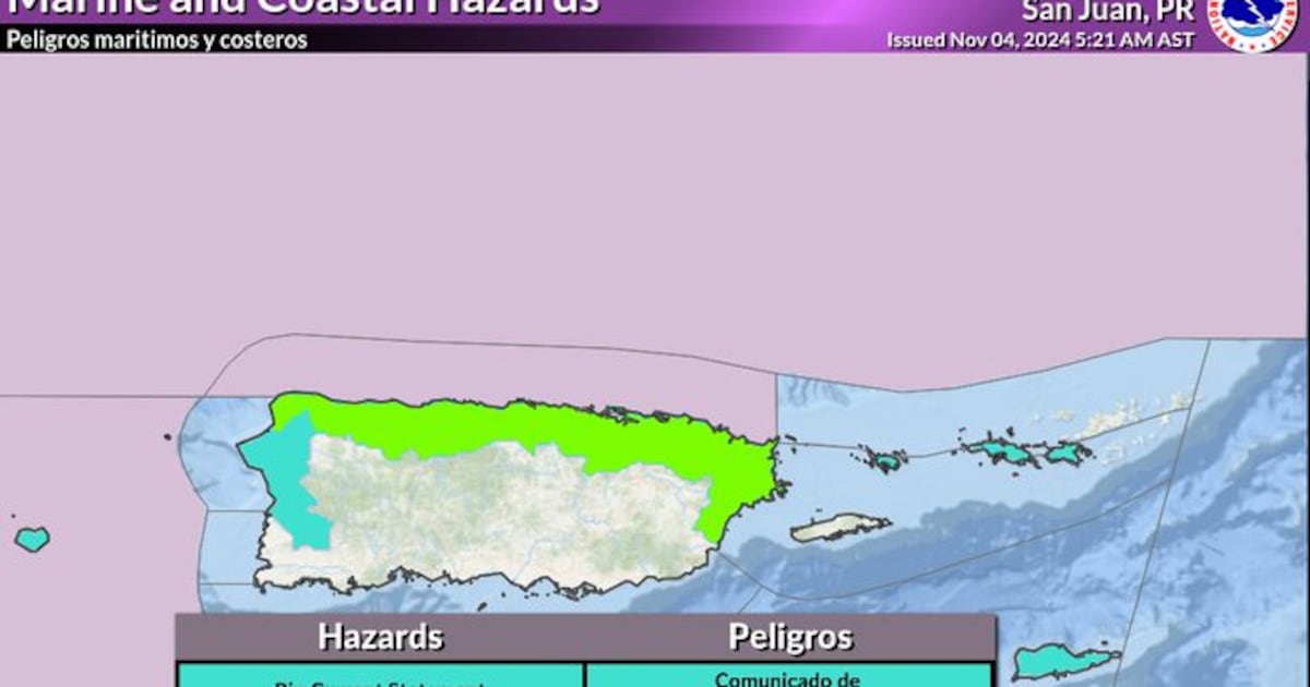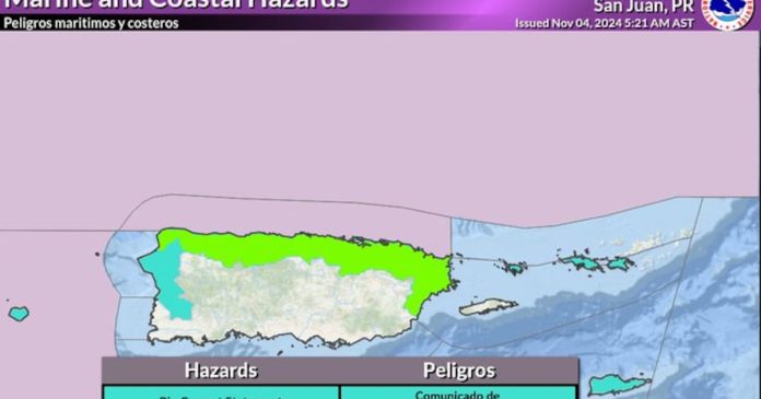 Las autoridades del tiempo informaron sobre una advertencia de inundación costera que estará en efecto hasta las 6:00 de la tarde. Advertencia de oleaje alto en efecto hasta las 6:00 de la tarde. Alto riesgo de corrientes de resaca vigente hasta esta noche.