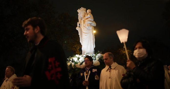 “Esta noche, mientras acompañamos a la Virgen María a su catedral, antes de que tome su lugar en el pilar donde tantas generaciones han venido a rezar, sabemos que se está uniendo a la casa de Cristo”, dijo Ulrich, inclinándose ante la estatua y bendiciéndola con incienso.