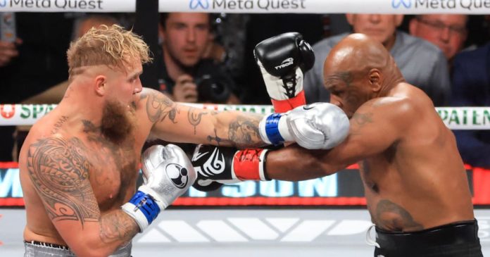 ARLINGTON, TEXAS – En un muy anticipado combate con más elementos de espectáculo que otras carteleras, Jake Paul, de 27 años, venció por decisión unánime luego de ocho asaltos a la leyenda del deporte boxístico, Mike Tyson, de 58 años.