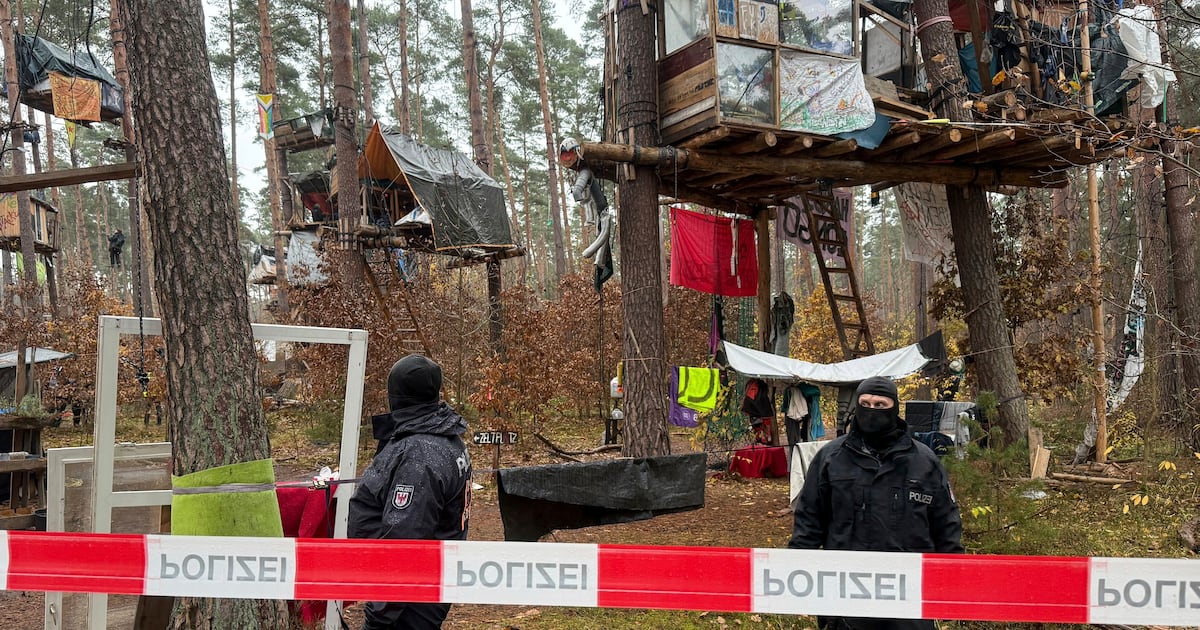 La policía intervino por primera vez en el campamento de protesta el lunes para evacuar temporalmente partes del campamento con cabañas construidas en los árboles debido a una búsqueda planificada de municiones explosivas de la Segunda Guerra Mundial. Sin embargo, los activistas se negaron a salir y en su lugar subieron a lo alto de algunos de los árboles, informó la agencia de noticias alemana dpa. La policía finalmente sacó a seis personas de las cabañas en los árboles que no querían irse voluntariamente.