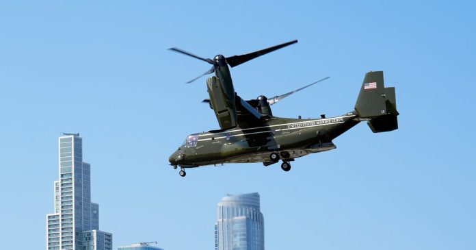 NUEVA YORK (AP) — Una aeronave militar Osprey que se utilizaba para transportar a personal de la Casa Blanca y a funcionarios gubernamentales desde un evento en Nueva York el lunes fue inmovilizado por cuestiones de seguridad, mientras un testigo reportó haber visto llamas bajo el motor derecho.