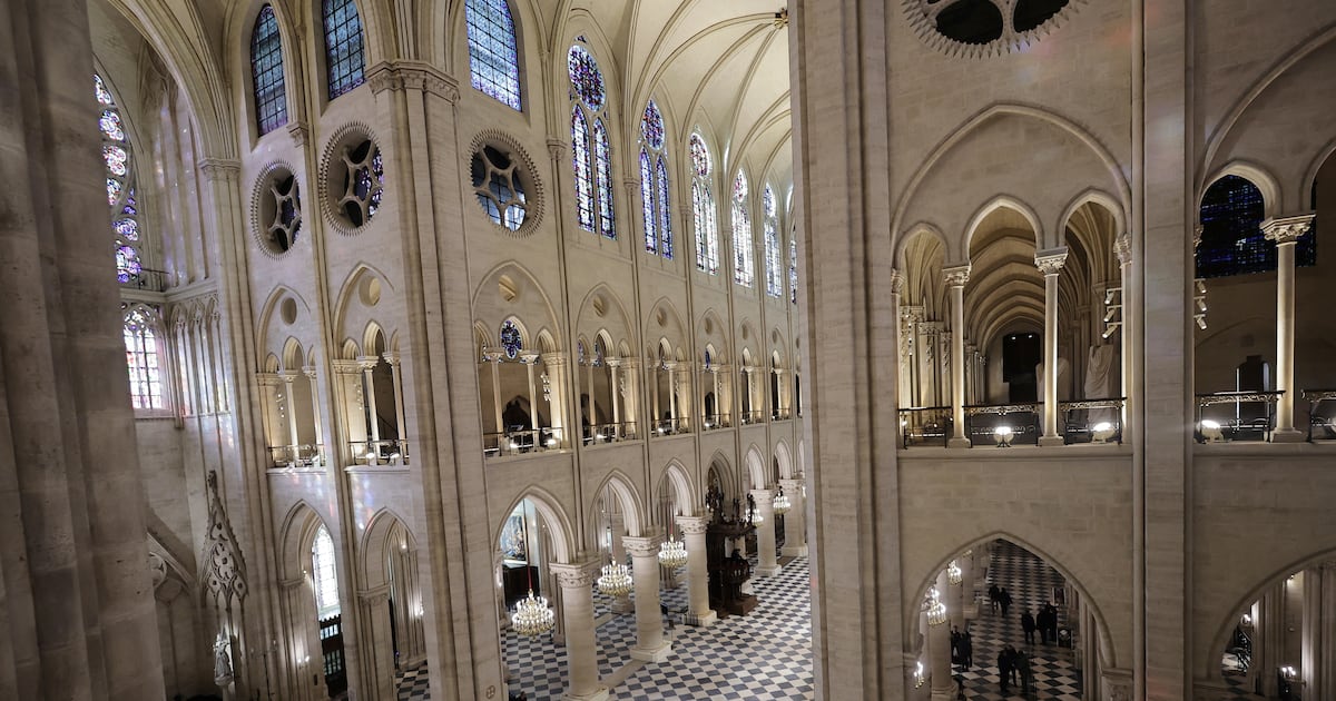 Cinco años después de que un inmenso incendio redujera la Catedral de Notre Dame a una cascarón humeante, The Associated Press entró en la obra maestra gótica para echar un primer vistazo a sus interiores completamente restaurados durante una visita con el presidente francés Emmanuel Macron que fue transmitida al público, y la transformación es simplemente impresionante.