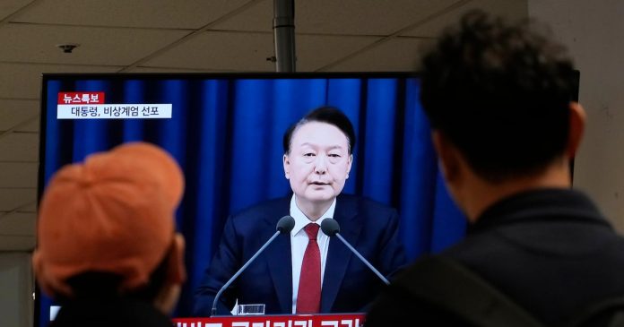 SEÚL, Corea del Sur (AP) — El presidente de Corea del Sur, Yoon Suk Yeol, declaró un “estado de ley marcial de emergencia” el martes, acusando a la oposición de controlar el Parlamento, simpatizar con Corea del Norte y paralizar al gobierno con actividades antiestatales.