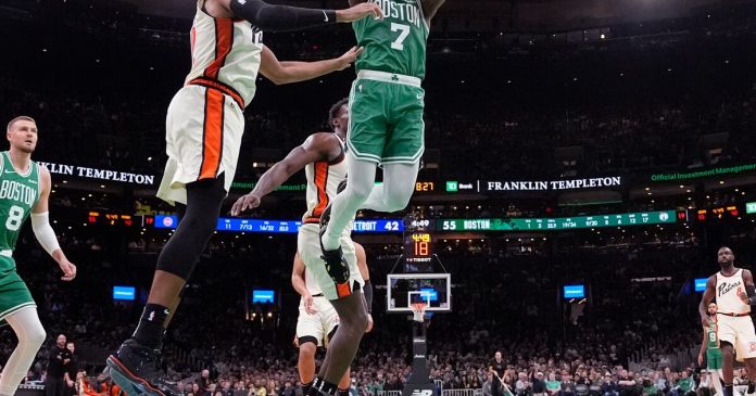 NBA multa a Jaylen Brown de los Celtics por gesto de degollar contra Detroit