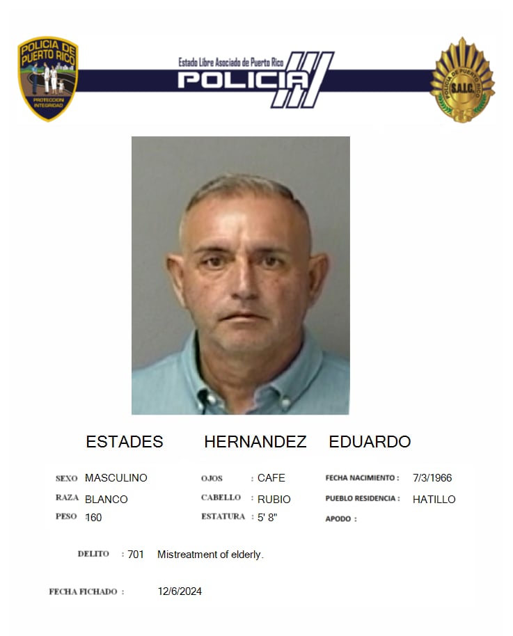 Agente adscrito al distrito de Hatillo del Negociado de la Policía de Puerto Rico y el Departamento de Justicia, radicaron cargos por el articulo 127 (a) del código penal por maltrato a persona edad avanzada contra un hombre.