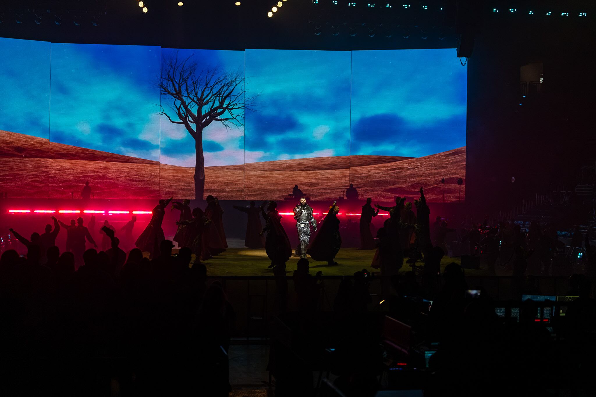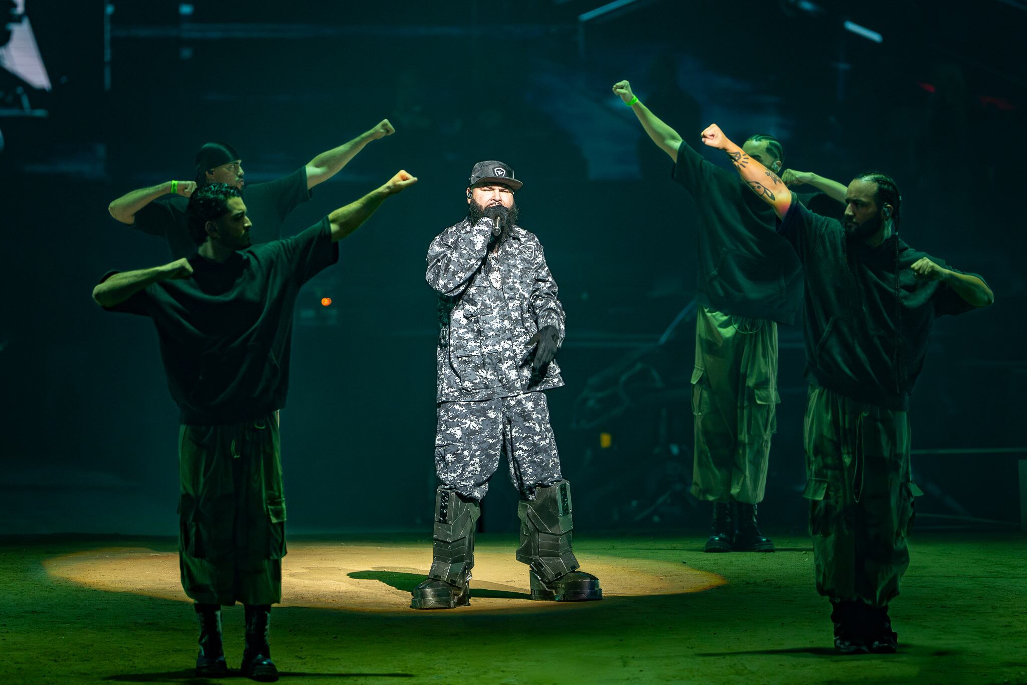 Farruko, quien actualmente se encuentra enfrascado en una polémica con su colega del género, el trapero Anuel AA, inició la función pasada las diez de la noche con los temas Sahara, Shofar, Puñal y Apocalypse todos incluidos en el álbum Cvrbon Vrmor lanzado en octubre pasado y que da nombre a la presentación.