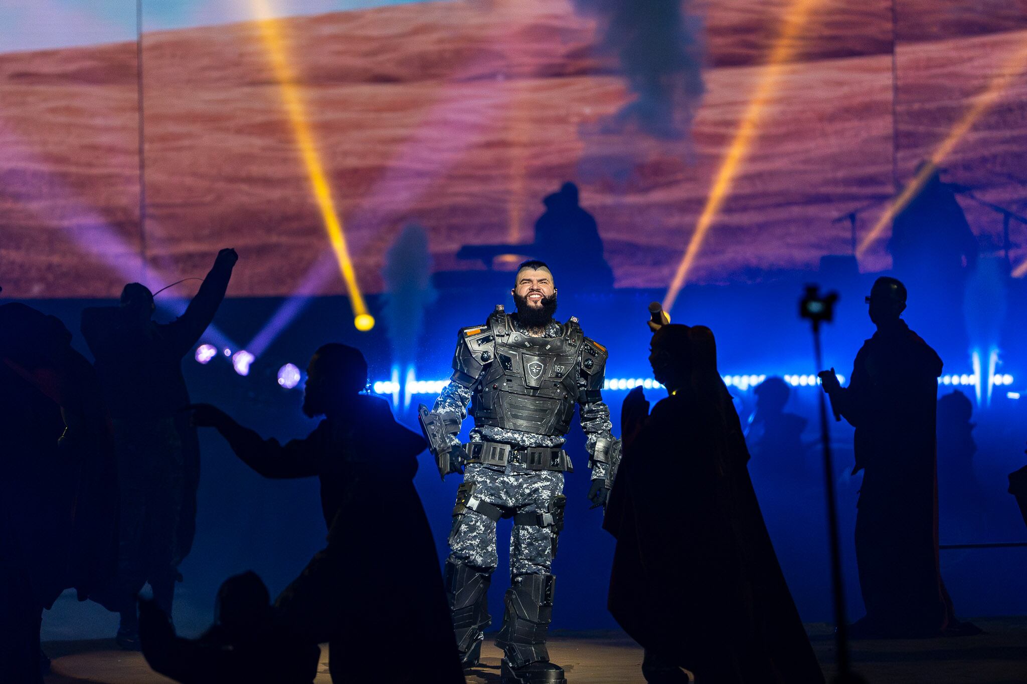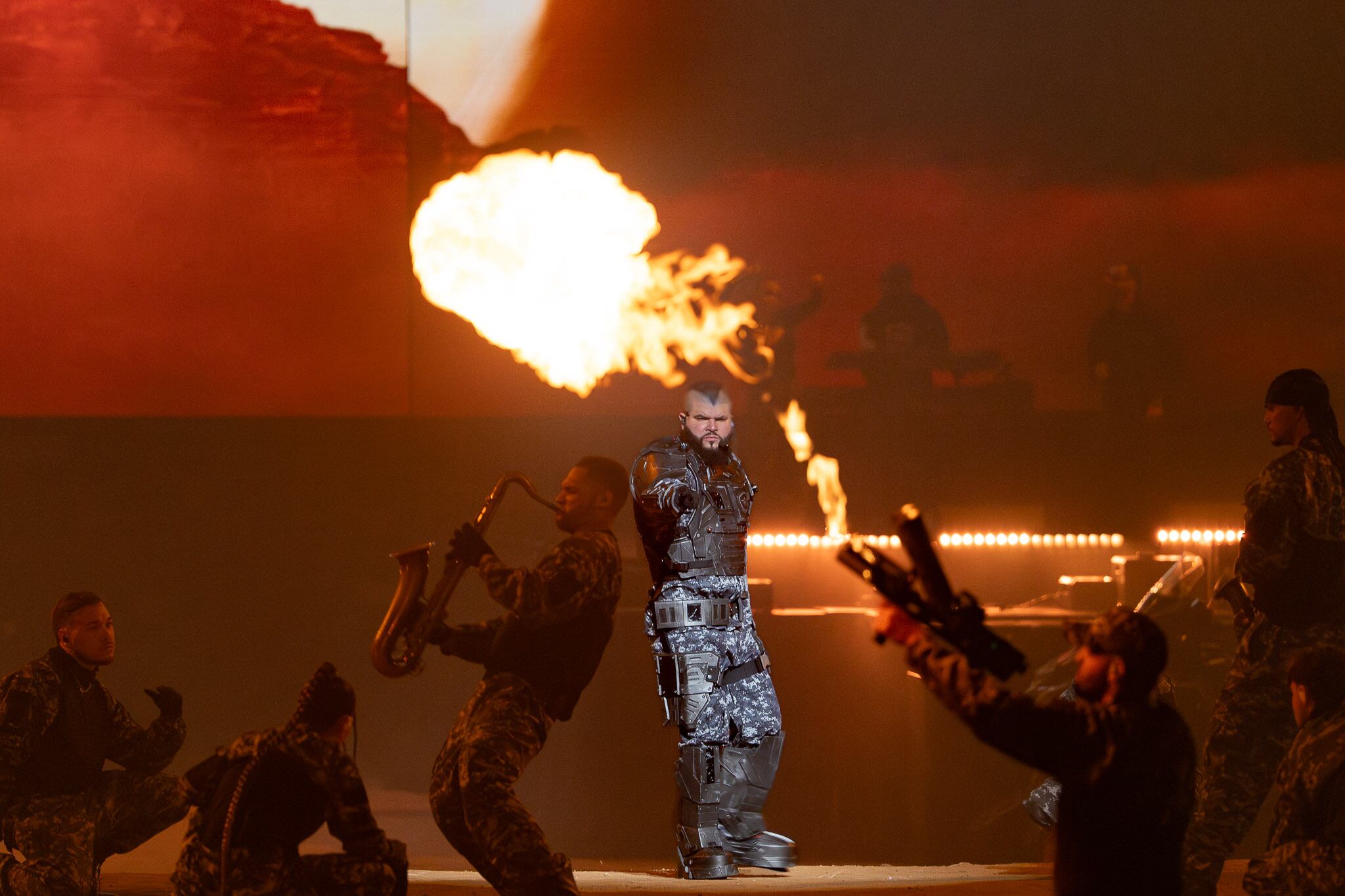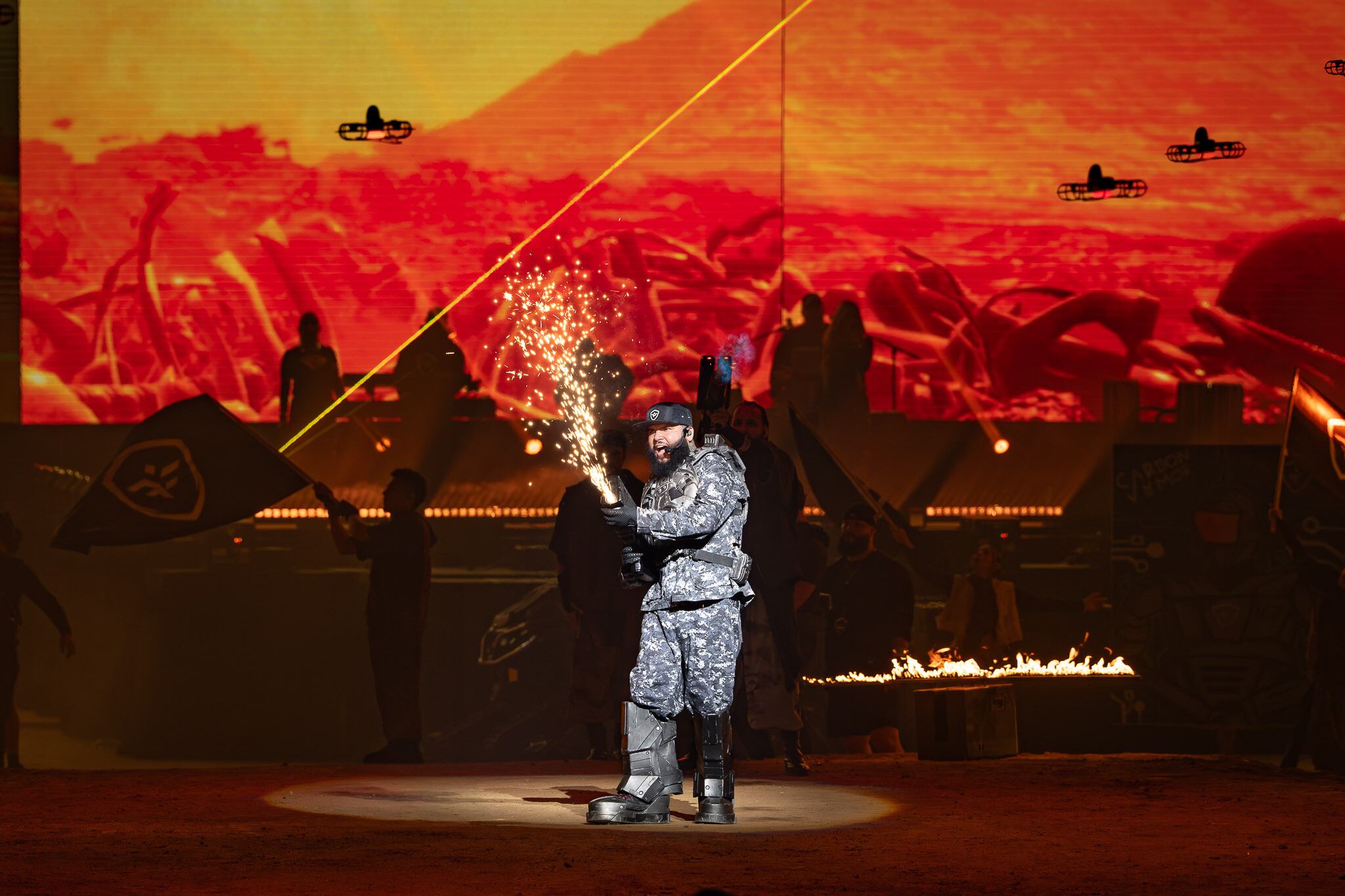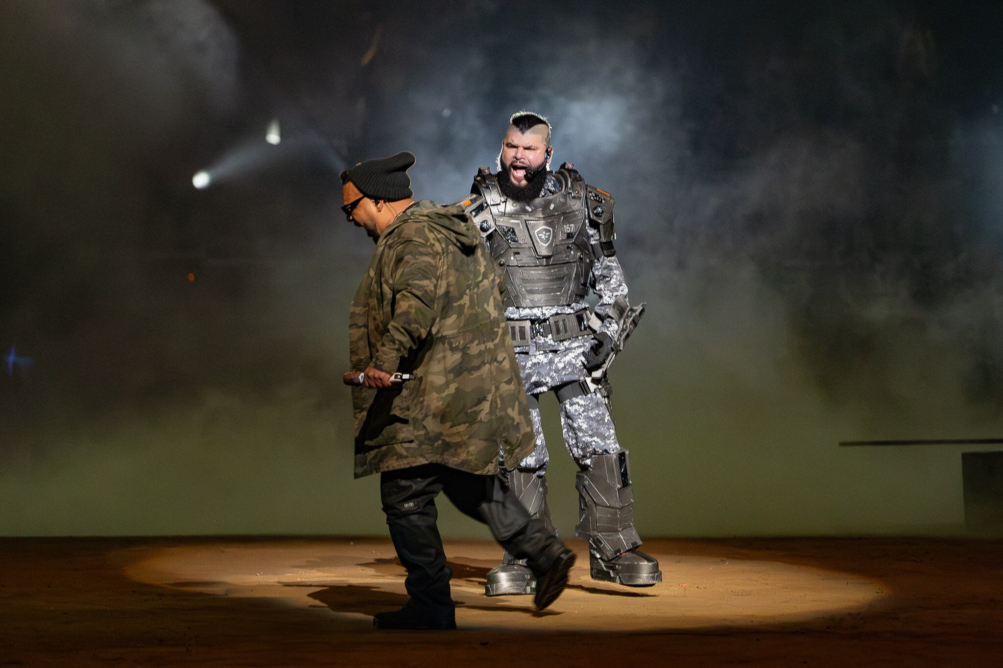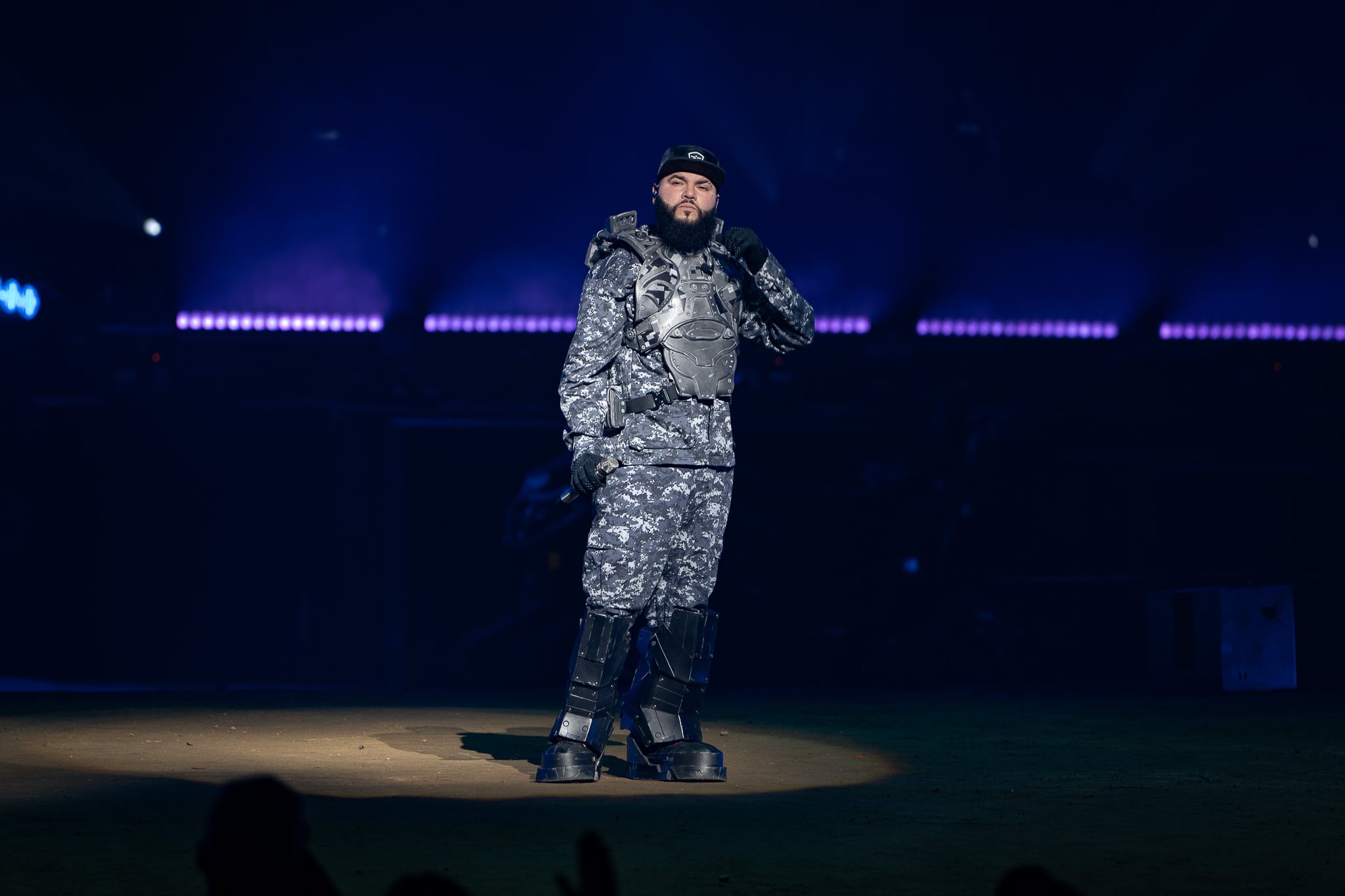 Como si se tratara de una batalla interna entre el bien y el mal, incorporando elementos bélicos como tanques blindados, armas de fuego y vestimenta militar, el cantante del género urbano, Farruko, presentó el espectáculo Cvrbon Vrmor en el Coliseo de Puerto Rico, la noche del viernes.