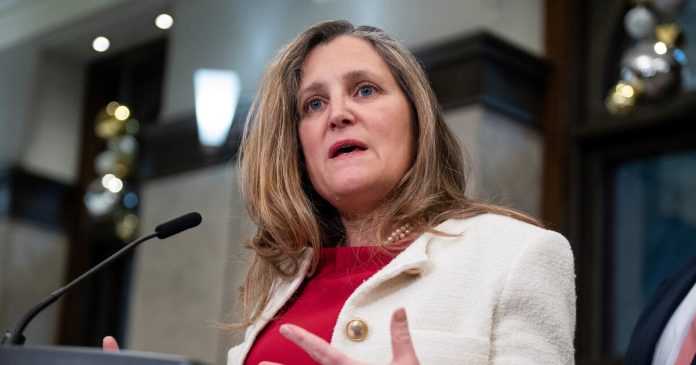 Freeland subrayó que Canadá está lidiando con la amenaza del presidente electo de Estados Unidos, Donald Trump, de imponer aranceles generalizados del 25% y debería evitar “trucos políticos costosos” que “no puede permitirse”.