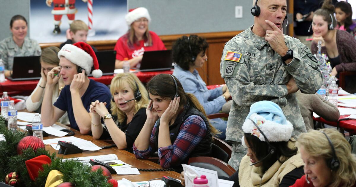 En cualquier otra noche, NORAD está escaneando los cielos en busca de posibles amenazas, como el globo espía chino del año pasado. Pero en Nochebuena, los voluntarios en Colorado Springs responden preguntas como, ”¿cuándo viene Santa a mi casa?” y, ”¿estoy en la lista de los traviesos o en la de los buenos?”