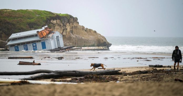 Más de un pie de lluvia en áreas del norte de California provocaron inundaciones récord, mientras que un incendio obligó a evacuar comunidades en el condado de Los Ángeles. En San Francisco, los meteorólogos emitieron la primera alerta de tornado, y en Santa Cruz, el fuerte oleaje derribó parte de un muelle.