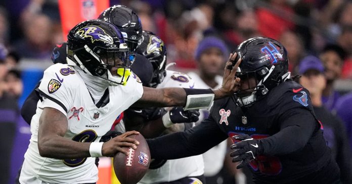 Los Ravens superaron en ataque terrestre a Houston 251-58. Jackson anotó en un acarreo de 48 yardas y Henry pasó entre grandes huecos desde el principio.