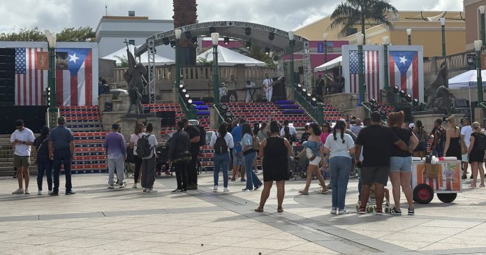 Las fiestas de pueblo organizadas este jueves para celebrar la toma de posesión de Jenniffer González Colón como gobernadora de Puerto Rico comenzaron puntualmente a las 2:00 p.m. en la Plaza del Quinto Centenario, mejor conocida como el Tótem, en el Viejo San Juan. Sin embargo, al inicio del evento, la plaza permanecía con pocos ciudadanos en los alrededores.