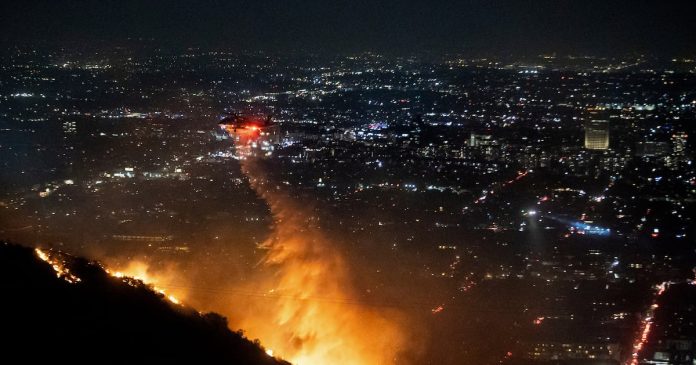 El incendio de las colinas de Hollywood arde cerca de varios puntos de referencia de Hollywood, incluido el Paseo de la Fama, el Teatro Chino TCL y el Hollywood Bowl.