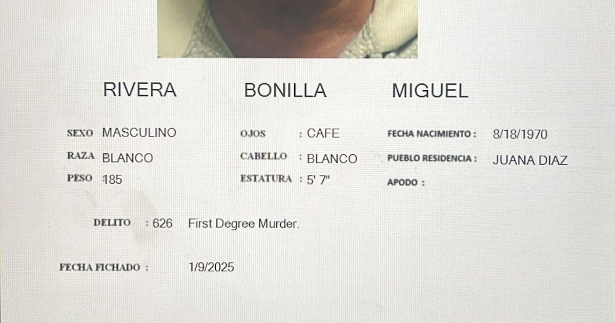 Miguel Rivera Bonilla, de 64 años y residente de Juana Díaz, fue ingresado en prisión luego de que la Policía de Puerto Rico, en conjunto con la Fiscalía, le radicara cargos por Asesinato en Primer Grado, violación a la Ley de Armas, destrucción de evidencia e intimidación a testigos, según informó el Negociado de la Policía.