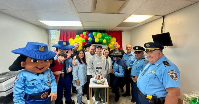 El sargento Joel D. García Echevarría de la División de Delitos Sexuales y Maltrato a Menores del CIC, junto a la agente Tania Cortés Correa, las diferentes unidades y divisiones, celebraron el cumpleaños del joven Moisés Adrián Ruiz Rodríguez, quien cumplió 18 años y anhelaba conocer a sus héroes los Policías y las diferentes funciones que ejercen por Puerto Rico.