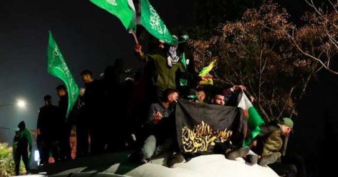 Militantes enmascarados aparecieron en algunas celebraciones, donde las multitudes coreaban eslóganes en su apoyo, según reporteros de Associated Press en Gaza. La policía, bajo control de Hamás, comenzó a desplegarse en público después de haber permanecido mayormente oculta debido a los ataques aéreos israelíes.