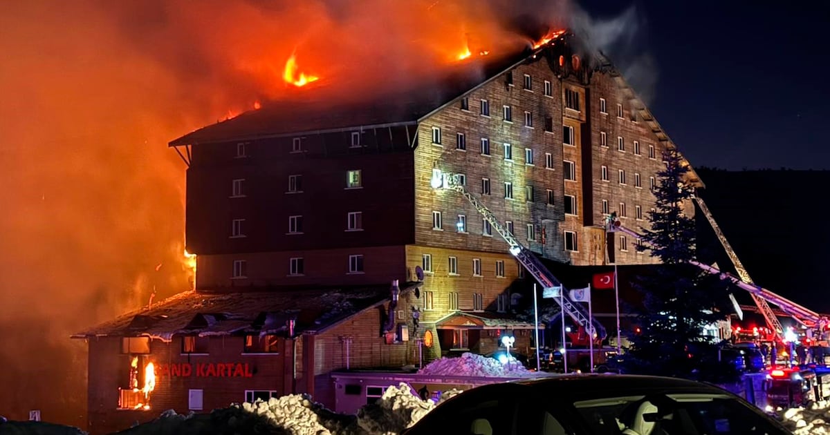 El fuego comenzó alrededor de las 3:30 de la madrugada en el restaurante del hotel Grand Kartal, de 12 pisos, en el centro turístico de Kartalkaya, en la provincia de Bolu, de acuerdo con funcionarios y prensa. Están investigando la causa.