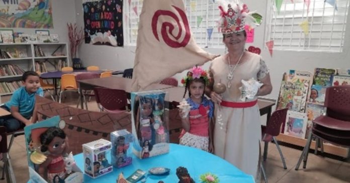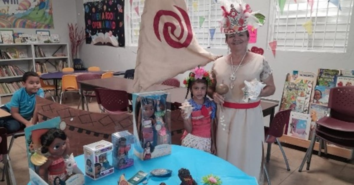 Para reforzar el mensaje y estimular la curiosidad de sus estudiantes Bayron Ferreira se disfrazó de la Abuela Tala, personaje de la película animada Moana 2 para narrar y dramatizar la película a sus pupilos.