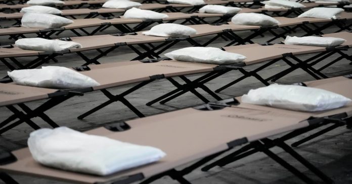 Los recursos de la ciudad han estado bajo presión con la llegada de aproximadamente 230.000 migrantes desde la primavera boreal de 2022. Además de alojar temporalmente a migrantes en hoteles, también utiliza tiendas de campaña.