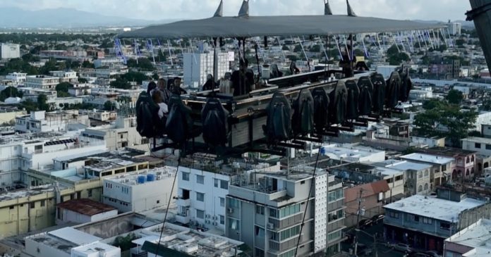 FlyDining, el restaurante que permite a las personas disfrutar de una comida gourmet en el cielo a una altitud de hasta 160 pies suspendió temporeramente sus operaciones hoy, a causa de que un cable se soltara.