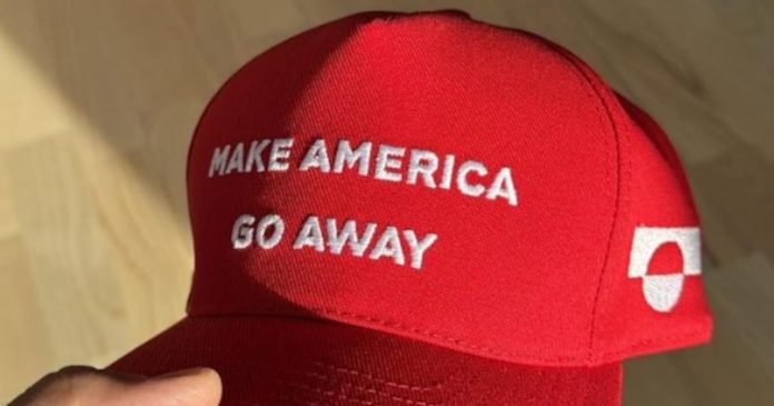 La gorra roja fue diseñada por Aannguaq Reimer-Johansen, y dice en letras blancas: “Make America, go away”, que traducido al español significa: “Haz que América desaparezca”.