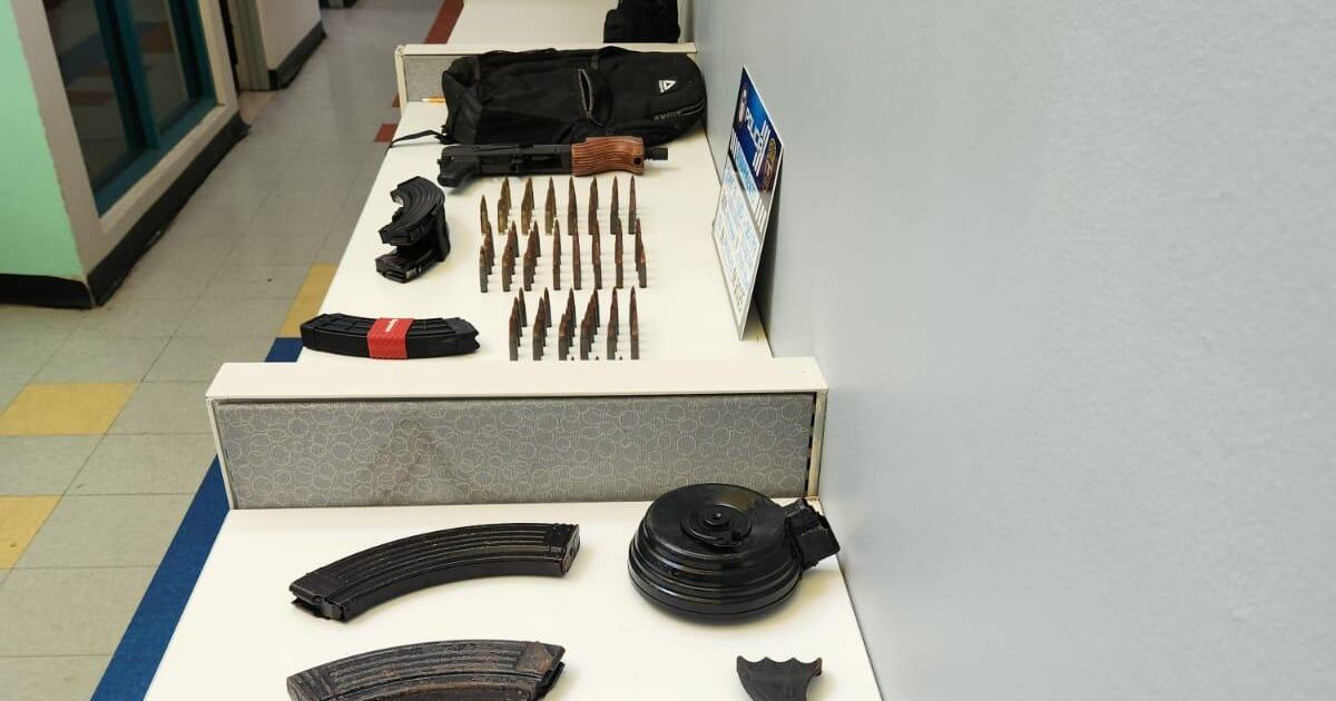 Como parte de la evidencia ocupada, los agentes confiscaron dos envases con marihuana, 89 pastillas controladas y un arma larga tipo rifle Pistol, calibre 7.62 x 39 milímetros.
