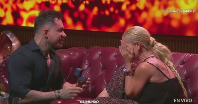Entre la emoción, lágrimas, besos y abrazos, Bruno se arrodilló ante Niurka y le dio un anillo.