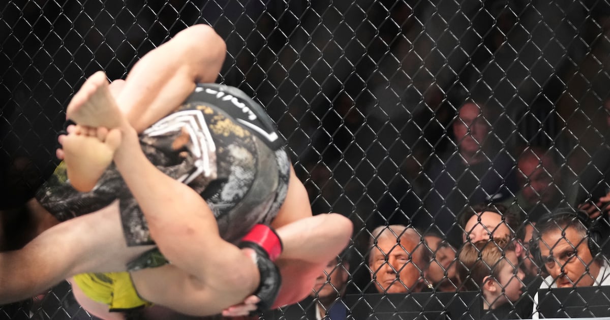 El presidente Donald Trump, un viejo amigo del mandamás de UFC Dana White y un fanático de las artes marciales mixtas, observó desde la primera fila. El basquetbolista retirado Shaquille O’Neal se acercó a Trump y le estrechó la mano.