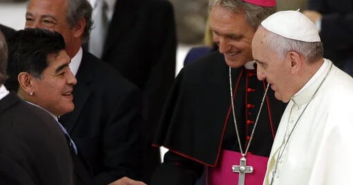 Francisco se reunió dos veces con su compatriota argentino Maradona como papa. Hubo una audiencia especial en relación con un partido de fútbol benéfico en 2014 cuando Maradona le presentó al pontífice una camiseta de fútbol, con el nombre “Francisco” y el número diez de Maradona.