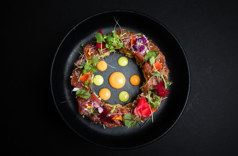 Y ese sabor está cuidadosamente construido en creaciones que entrelazan técnicas refinadas y los ingredientes de las culturas del Pacífico, incluyendo Japón, Corea, China, Hawái, la Polinesia Francesa y Filipinas.