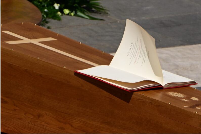 Una de las imágenes de esta solemne despedida fue la de las páginas del Evangelio movidas por el viento situado sobre la tapa del féretro.